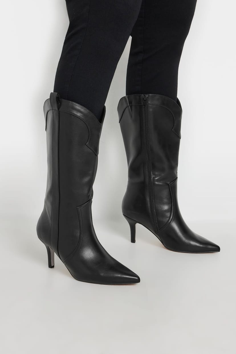 The Yours Women's Extra Wide Fit Heeled Cowboy Boots in Black is ideal for casual, evening, date-night.