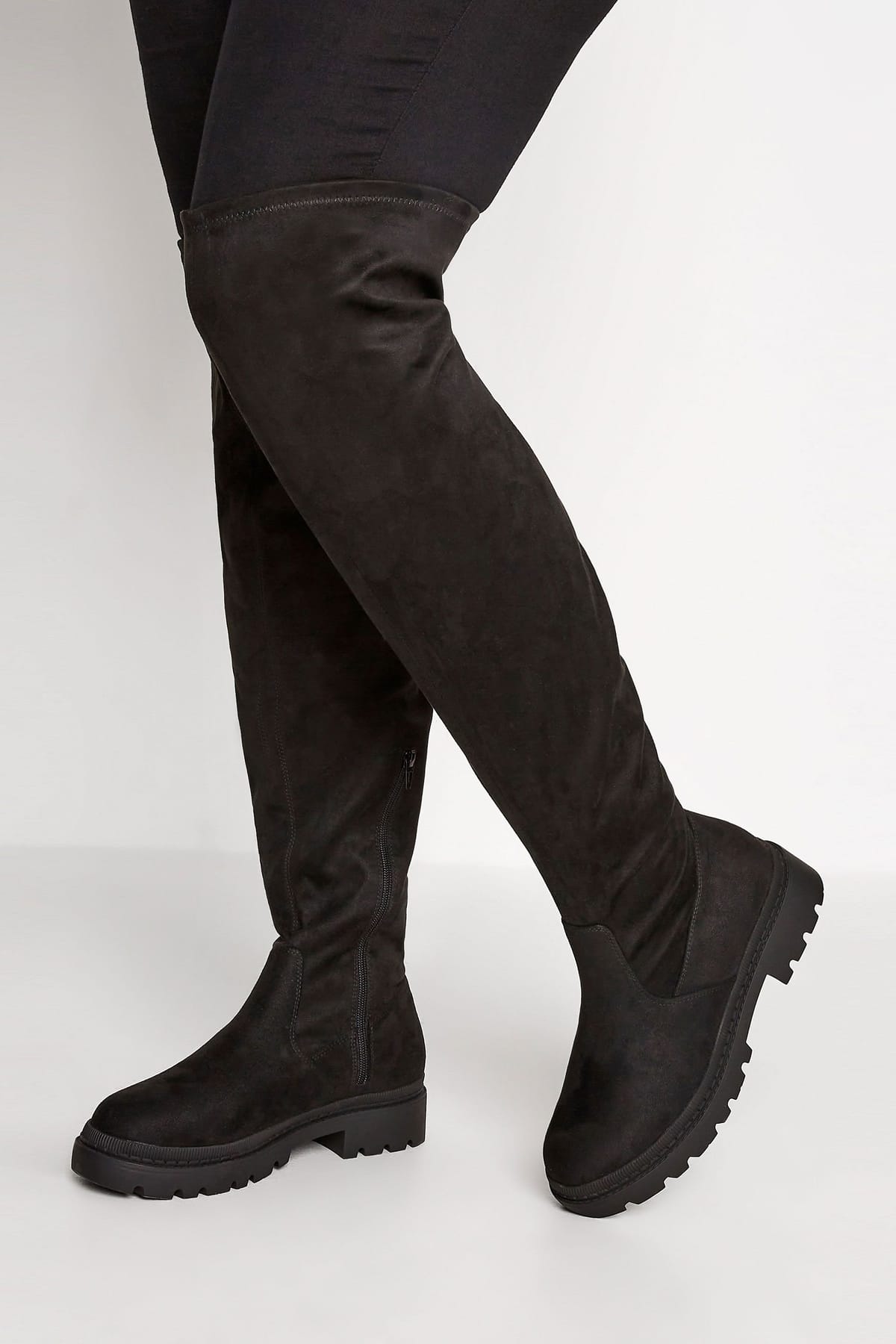 The Yours Black Faux Suede Over-The-Knee Boots is available in sizes 5e, 6e.