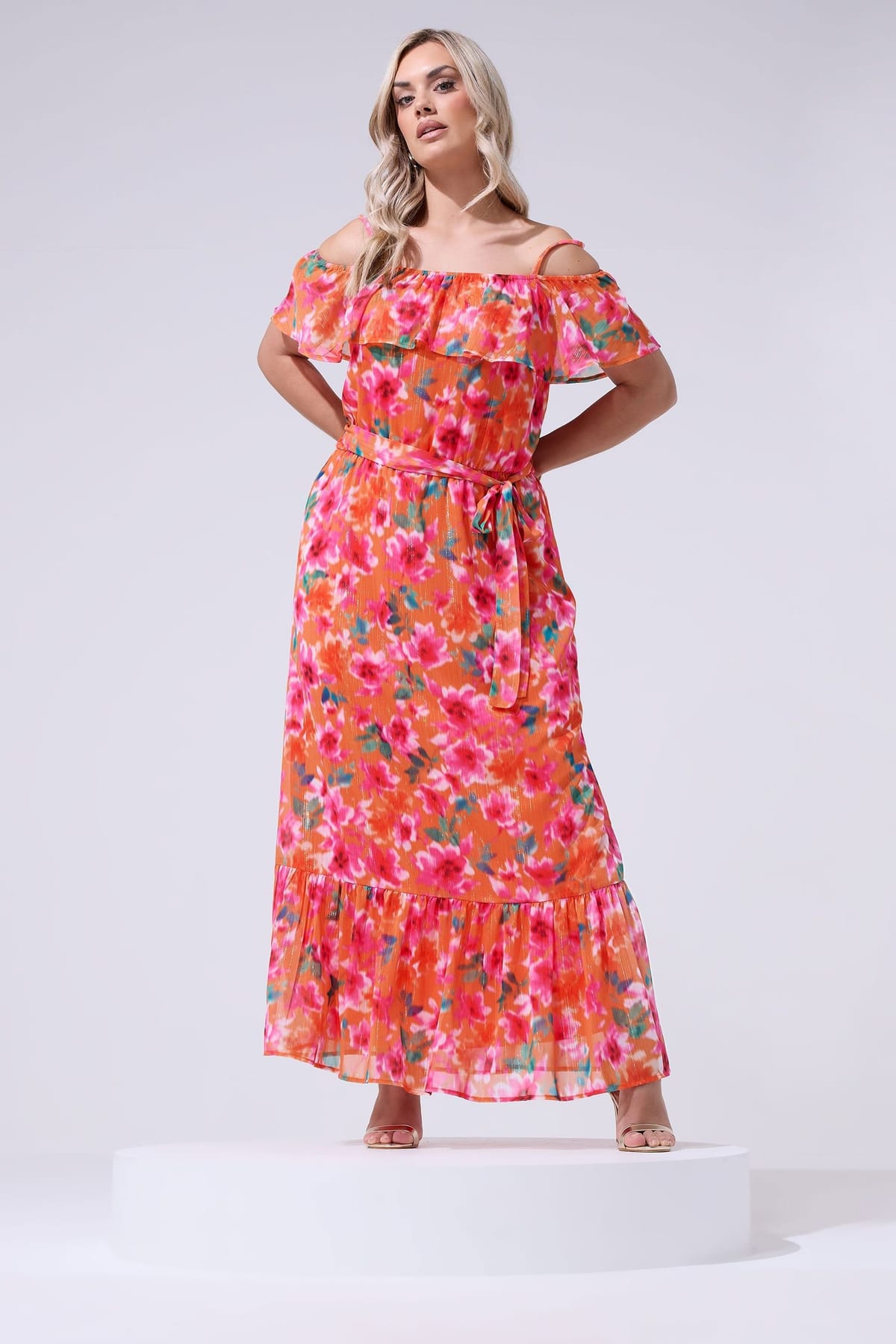 The Yours Coral Floral Cold Shoulder Maxi Dress is ideal for summer, garden party, wedding guest.