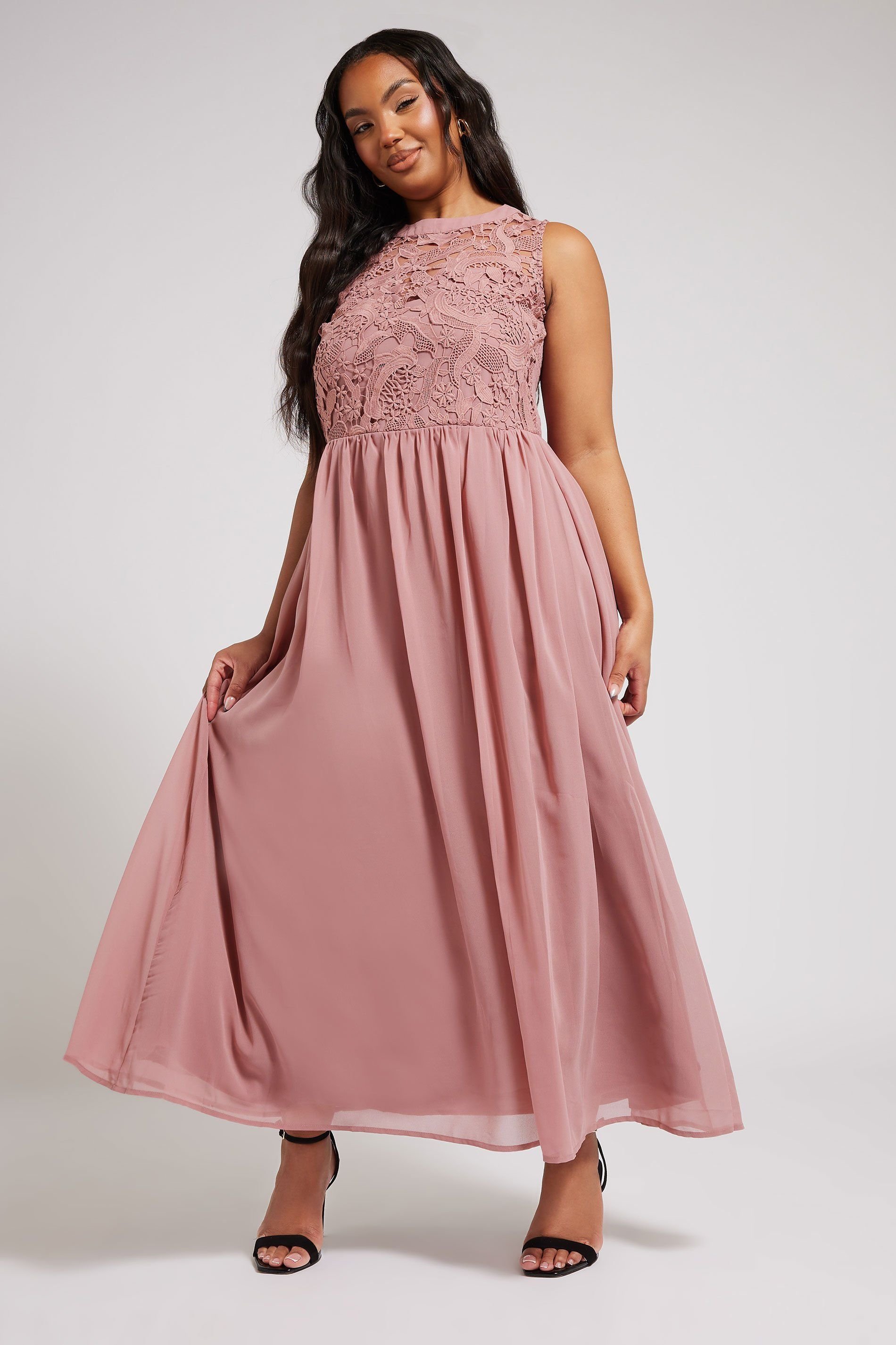 The Yours Light Pink Chiffon Maxi Dress is made from chiffon, lace.
