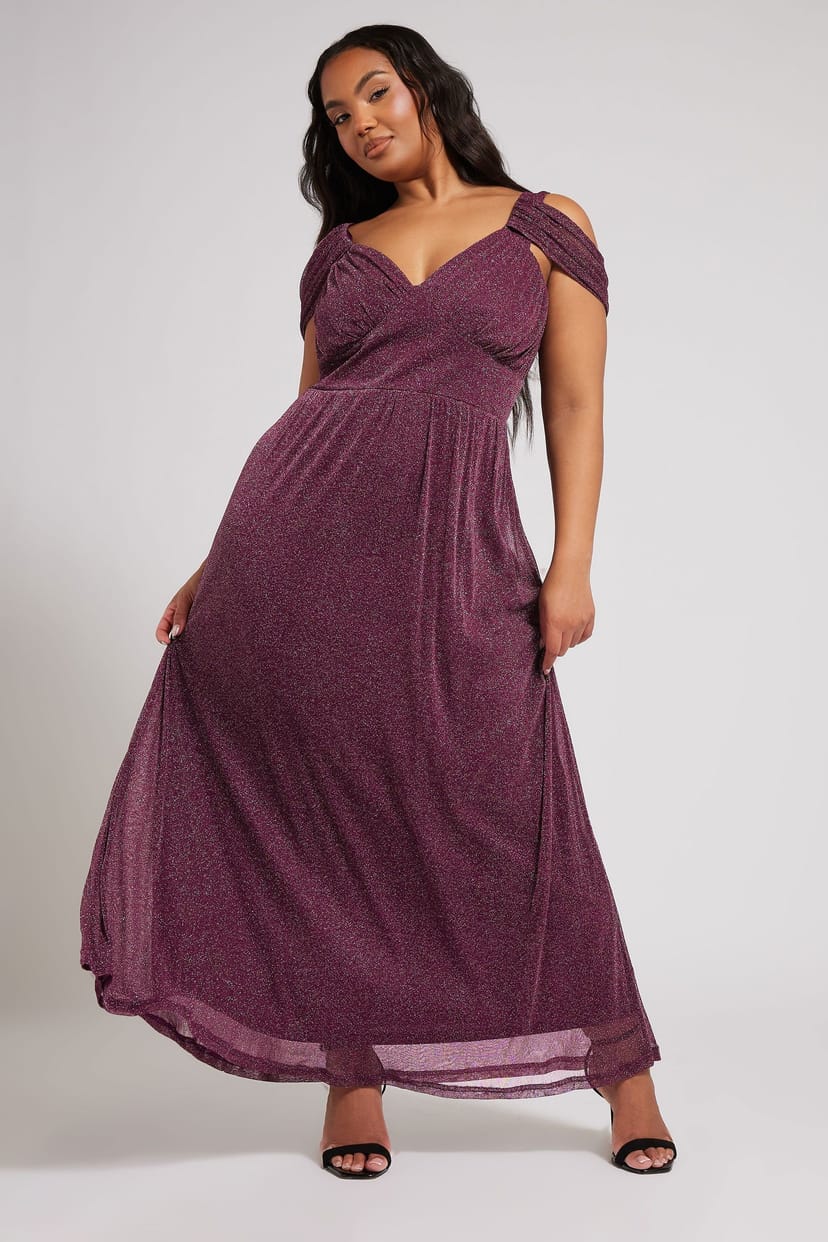 The Yours Purple Metallic Cold Shoulder Maxi Dress is ideal for prom, bridesmaids, wedding guest.