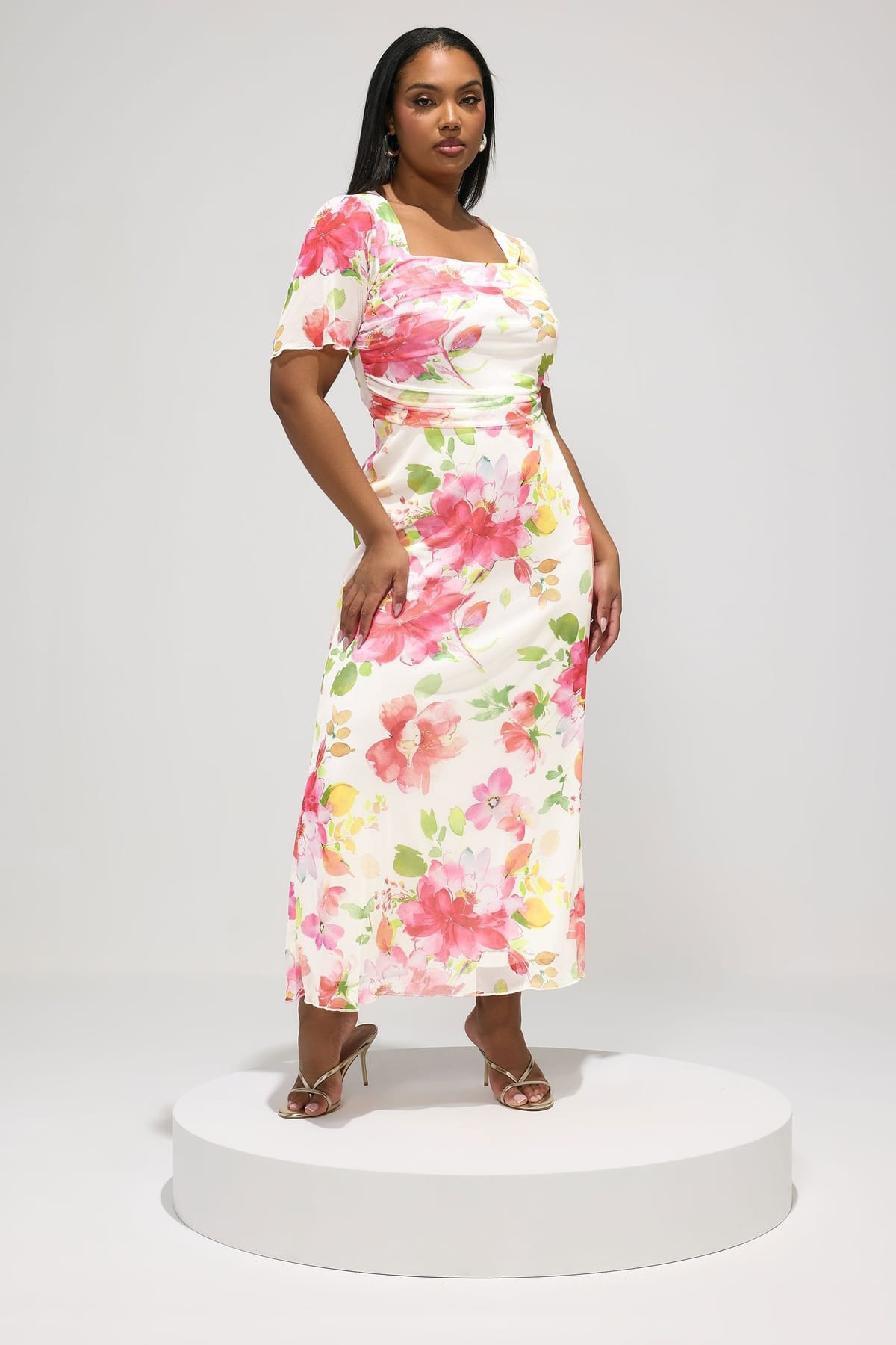This Yours London maxi dress in white with a floral print is perfect for formal events. Featuring a square neckline and short sleeves, it offers a flattering fit for every body. The mesh finish and full lining ensure comfort and elegance.