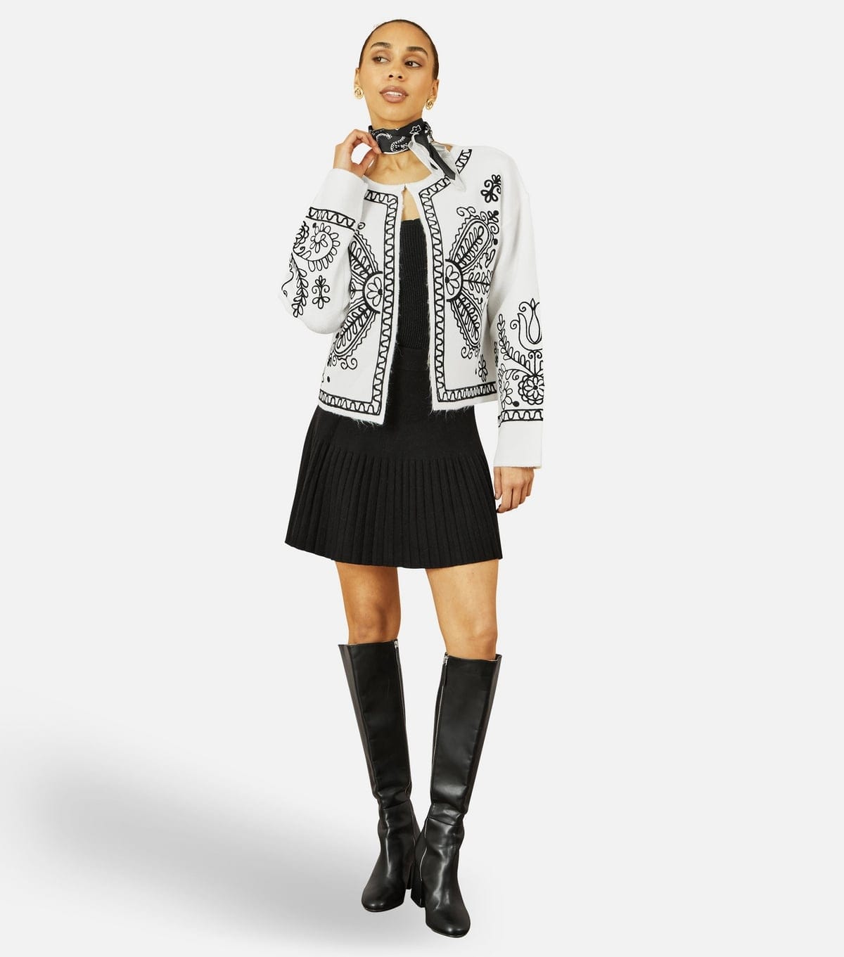 View New Look UK's returns policyTrendy black knitted mini skirt from Yumi by New Look. Made from knit fabric, it features a relaxed fit and pleated design. Ideal for a casual chic look.