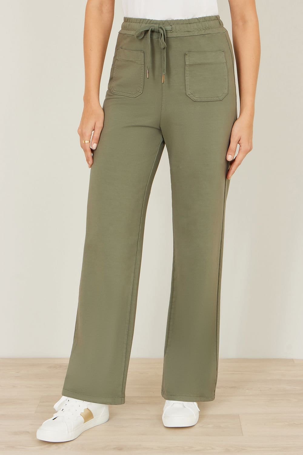 The Yumi Khaki Relaxed Stretch Wide Leg Trousers is ideal for everyday, casual, outdoor.