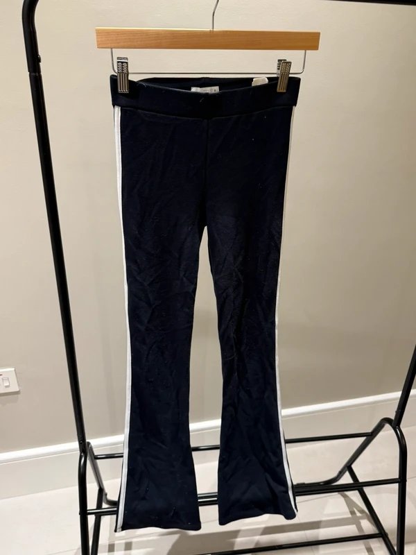 The Zara Black Flared Leggings with White Side Stripe is available in sizes S.