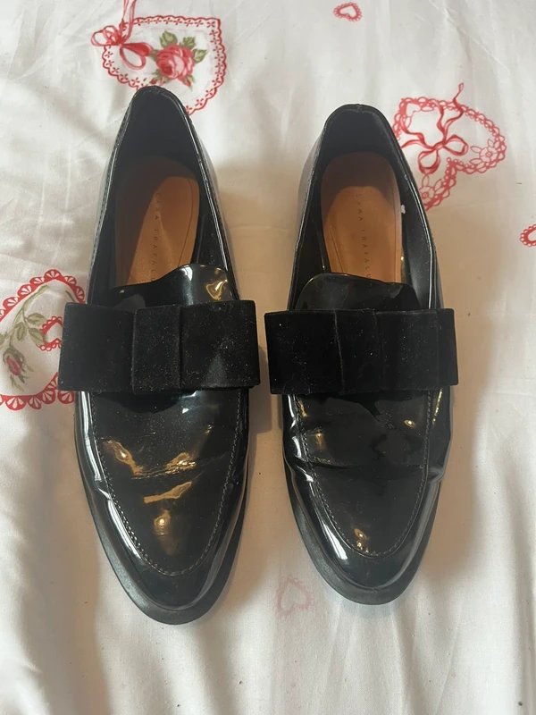 The Zara Black Velvet Loafer Boat Shoes with Ribbon Bow Detail is ideal for evening.