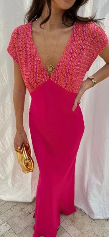 The Zara Crochet Long Dress in Pink is ideal for holiday, casual, beach.