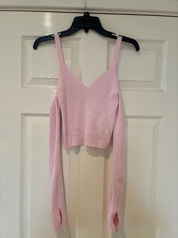 The Zara Pink Crop Top with Cut-Out Detail is available in sizes M.