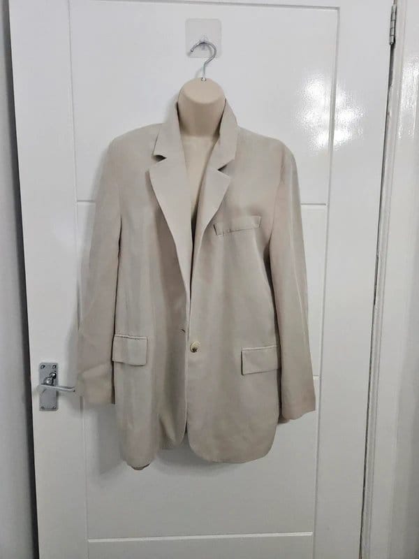 The Zara Beige Blazer Jacket for Women is available in sizes S.