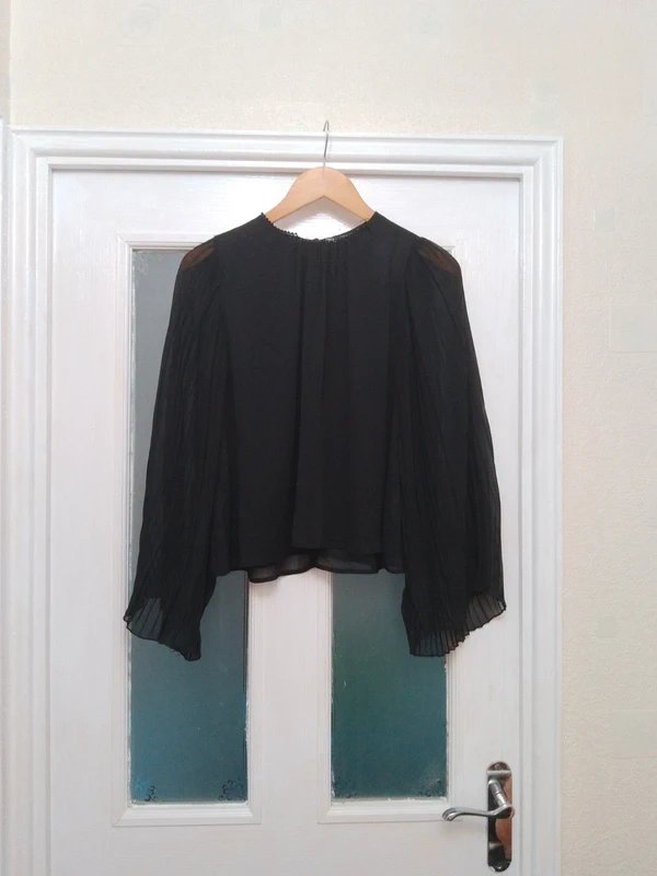 The Zara Black Chiffon Cocktail Blouse is available in sizes S.