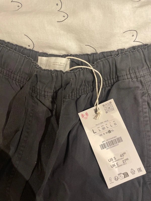 Brand new cargo trousers from Zara in a versatile grey hue. Perfect for a laid-back yet stylish look.