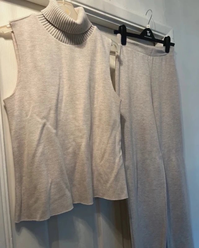 Crafted from cozy, knitted material, this Zara set features a roll neck top and matching trousers. Ideal for casual wear, the set offers a relaxed yet polished look perfect for any day.