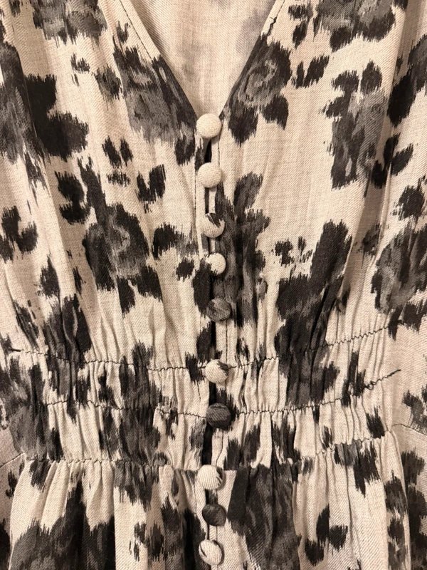 Gorgeous dress from Zara. Featuring a grey and black rose/floral shadow print, this dress has a cute ruffled detail at the sleeves. Could be worn up or down, making it a timeless piece.