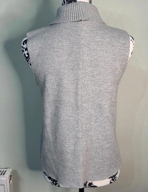 Classic grey marl sleeveless roll-neck knit top from ZARA. Perfect for layering over a shirt or wearing solo with jeans or trousers. Crafted from super soft knit fabric, this turtleneck sweater vest features a roll-neck design for a cozy and stylish look. Ideal for Autumn/winter layering.