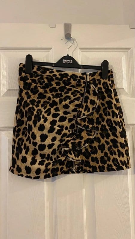 View Vinted's returns policyThis leopard print mini skirt from Zara features a bold animal print and a zipper closure. The mini length and ruched detailing add a touch of edginess to your look. Perfect for casual outings or adding a wild touch to your wardrobe.