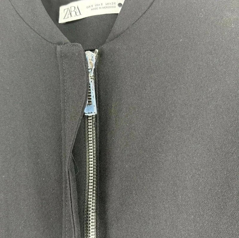 The Zara High Neck Long Sleeve Black Zip Playsuit is available in sizes S.