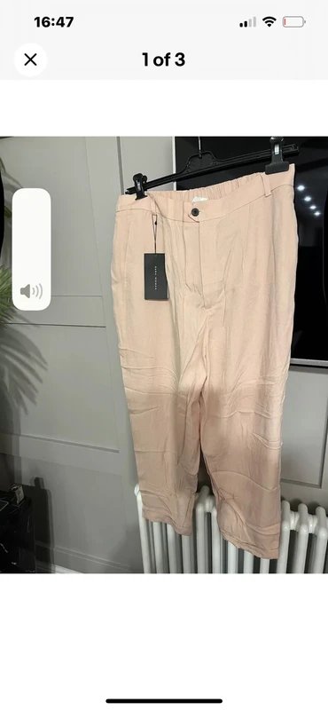 These gorgeous Zara trousers feature a lovely peachy/blush crepe type material. Perfect for a polished look, these smart trousers include turn-ups, side pockets, and rear pockets. Ideal for casual and smart-casual occasions.