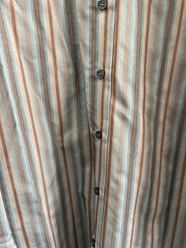The Zara Striped Shirt with Button Front in Blue and Brown is available in sizes L.
