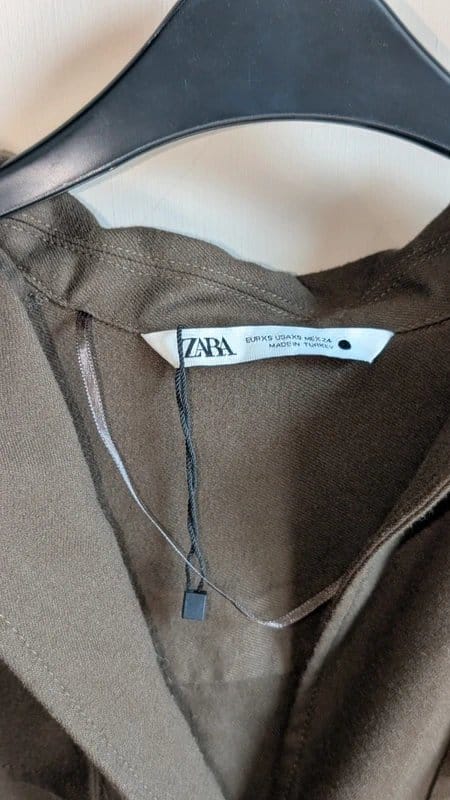 The Zara Khaki Tie Waist Shirt is available in sizes S.