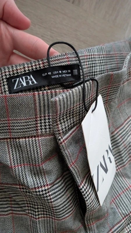 Designed with a grey checked plaid pattern, these cargo trousers from Zara offer a stylish twist to your wardrobe. The high-waisted design ensures a flattering fit, perfect for any casual occasion.