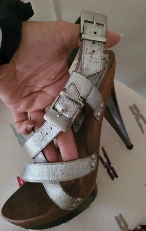 The ZU Faded Silver & Brown Leather High Heels is available in sizes S.